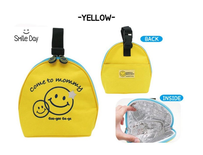 이번에는 미니미니한 제품으로 보여드립니다. 유모차 가방에 달고 다니면 편리한 보냉가방이예요. 사이즈는 작지만 수납공간이 알차서 간식, 물, 음료수 등을 가볍게 가지고 다닐 수 있는 보냉가방입니다. 컬러는 옐로우와 네이비 두가지 종류가 있고 귀여운 스마일 케릭터가 포인트로 들고다니기 좋은 보냉가방이랍니다!