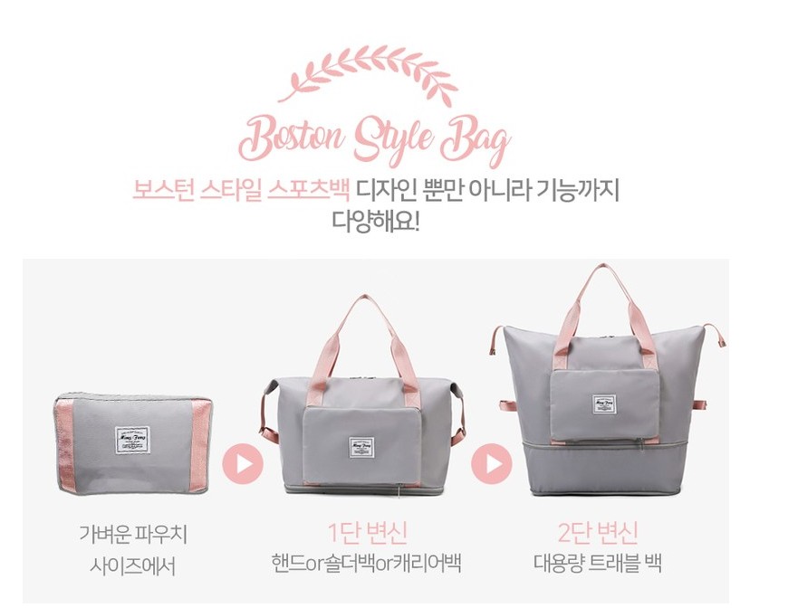 캐리어에 보조가방 없으면 아쉽죠! 캐리어는 화물칸으로 보내고 보스턴 스타일의 스포츠백은 기내에서 딱 필요한 물건만 넣어서 갈 수 있습니다. 그리고 바로바로 꺼내야 하는 여권이나 지갑, 물티슈 등 여행갈때 필수입니다. 접이식으로 가벼운 파우치 사이즈부터 대용량 트래블백까지 넉넉하게 사용할 수 있습니다.