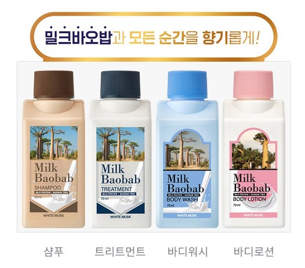 여행갈때 알차게 챙겨가야하는 트래블 키트입니다. 다 쓰고나면 덜어서 사용할 수 있기 때문에 소분해서 샴푸 린스 트리트먼트 바디워시 바디로션 등 챙겨야 할때 유용하게 사용할 수 있습니다.