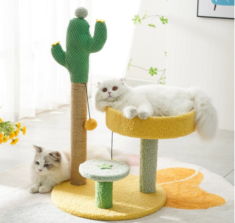 기둥형 캣타워입니다. 3단도 있고 미니 캣타워도 있기 때문에 골라서 선택이 가능합니다! 고양이가 좋아하는 소재로 만들어졌고 고양이가 심심하지 않게 놀이터로 활용할 수 있습니다! 선인장 디자인이기 때문에 집안 인테리어 효과도 있어요!